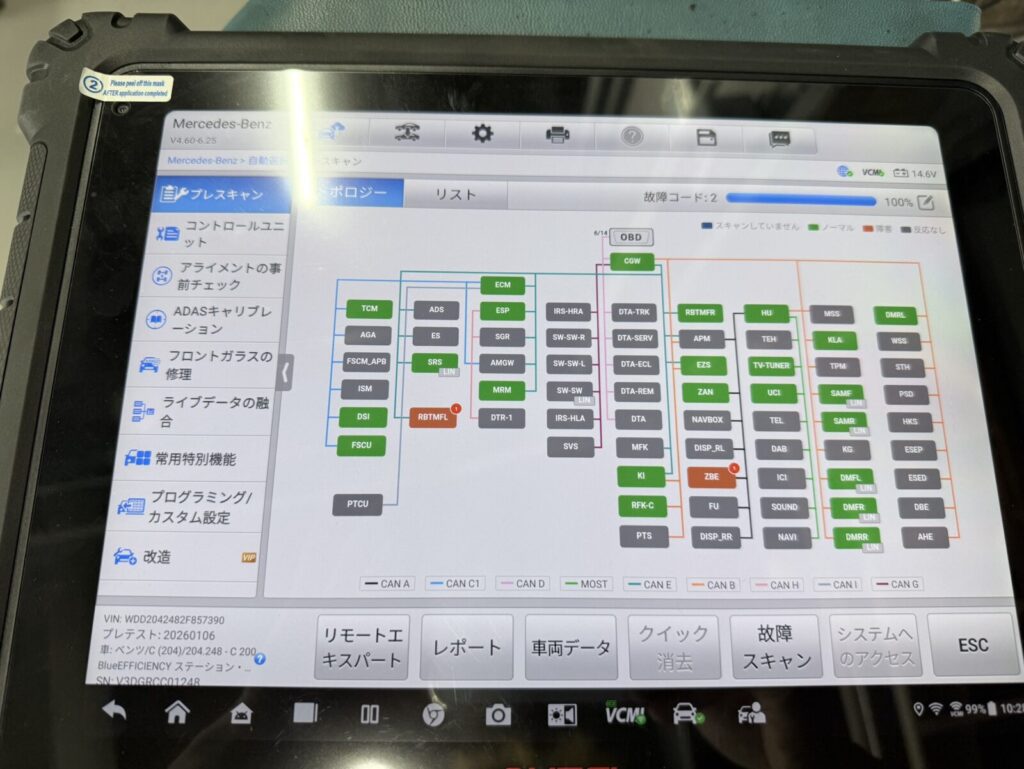 最後に診断機にてユニットのエラー等がないかチェックして終了です。