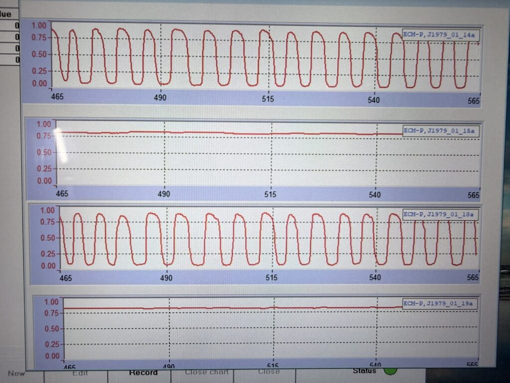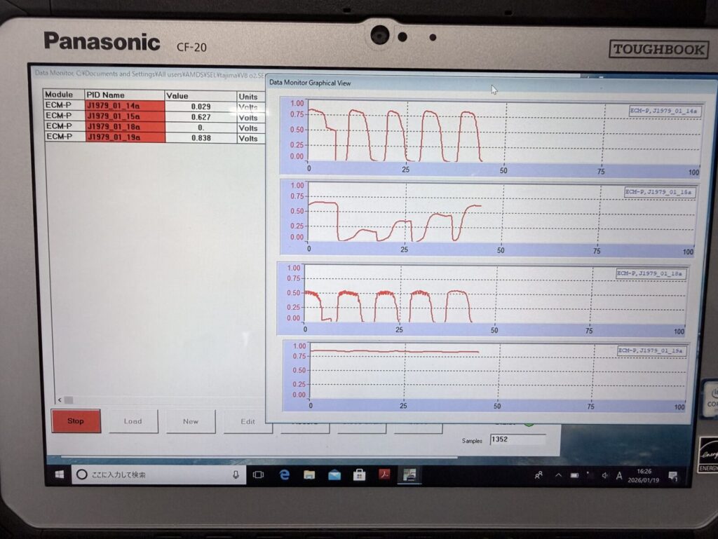 交換後は波形も安定しておりロードテスト実施後もチェックランプはつかず良好です。