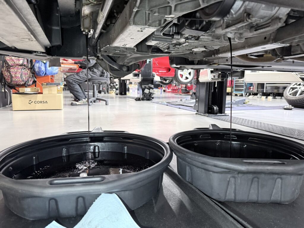 エンジンオイルの交換をします。