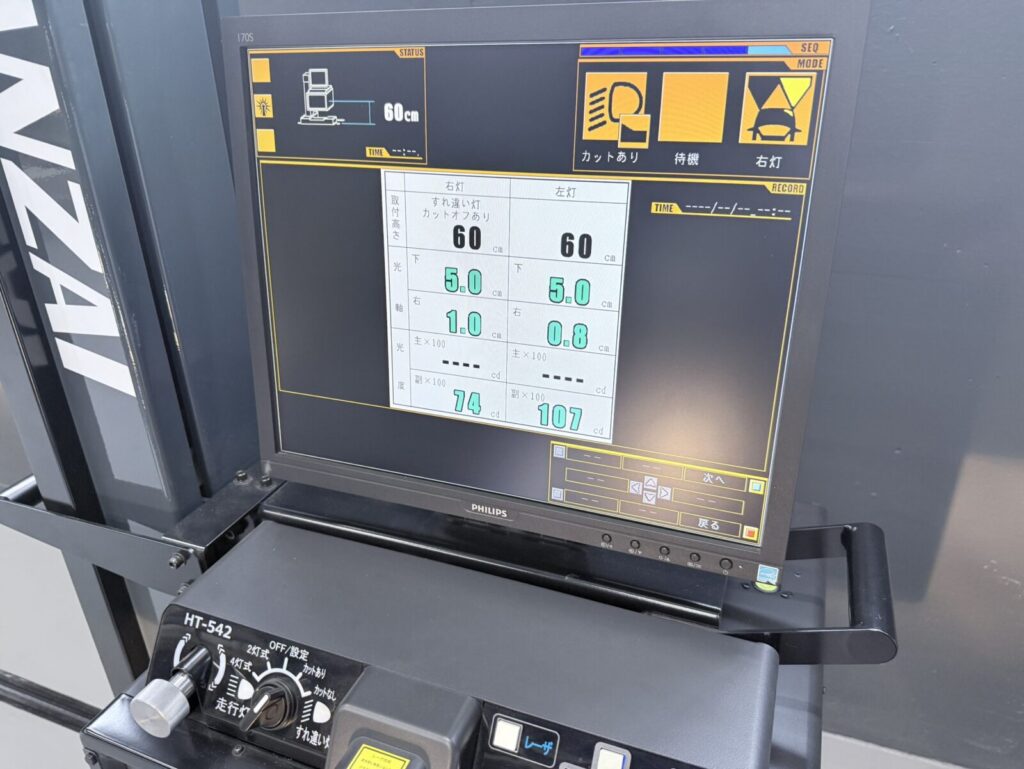 車検更新前にサイドスリップ・光軸調整を行います。