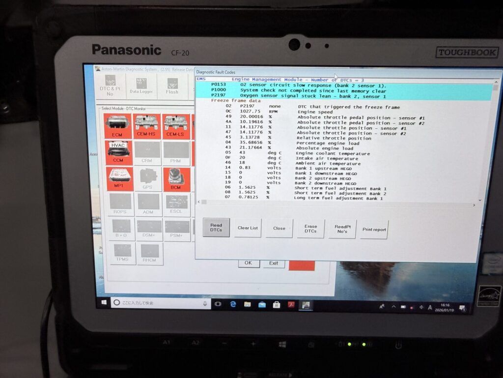 ASTON MARTIN V8 Vantage 車検整備 エンジンチェックランプ点灯 O2センサー 交換