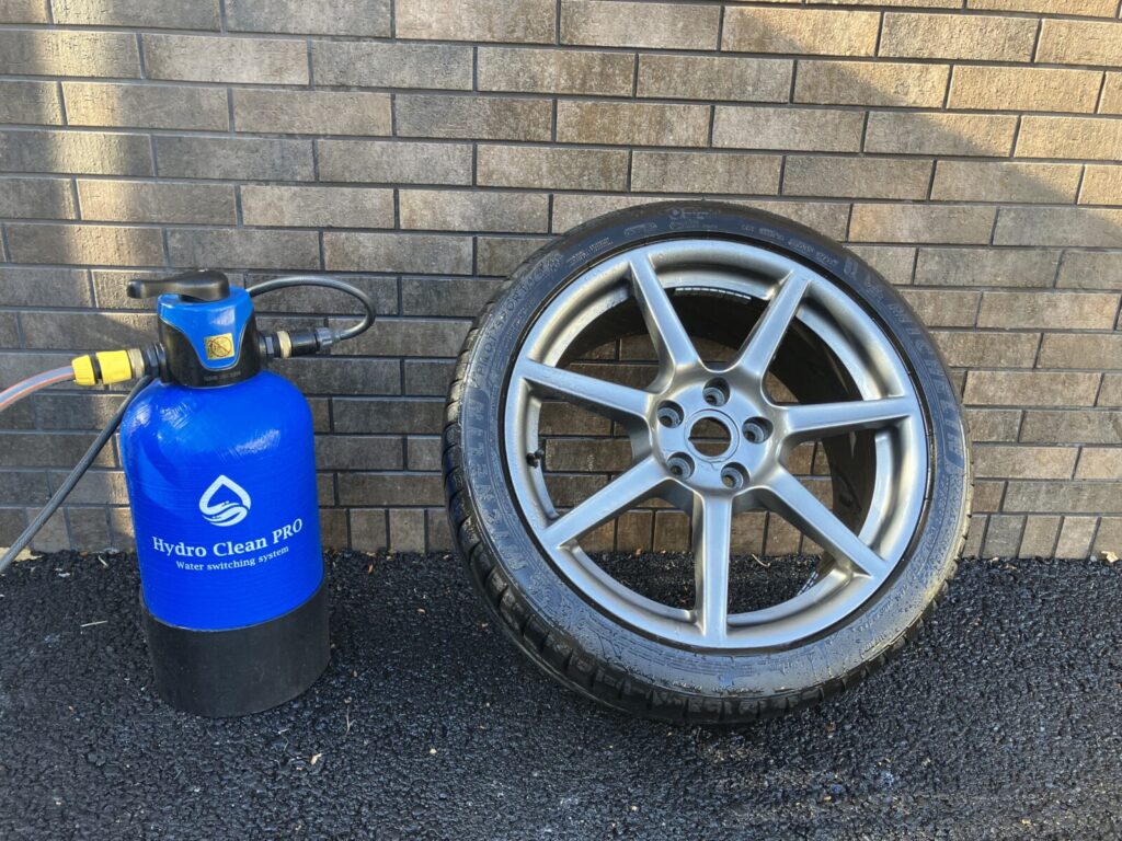 超音波洗浄後はホイールを純水ですすぎ、残った洗浄液を洗い流します。