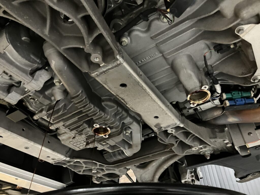 V8ヴァンテージのエンジンオイル循環方式はドライサンプ式のため、オイルドレンが複数個所存在します。