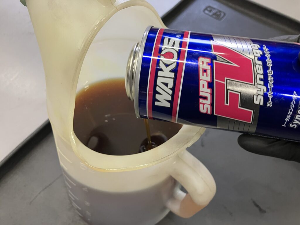 さらにエンジン内部保護性能を向上させるため、WAKO’S S-FV・S(スーパーフォアビークル シナジー)を添加。