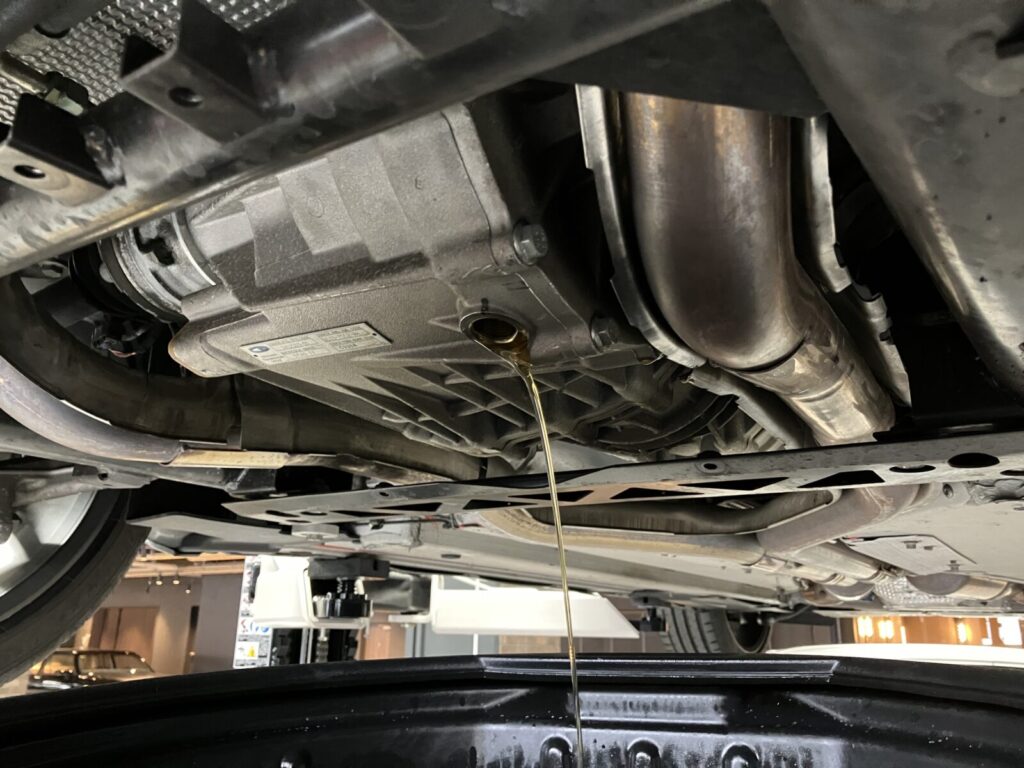 トランスアクスル内部から異音が発生している可能性もあることをオーナー様へお伝えし、今回はトランスアクスルオイルを交換して変化があるか様子をみていただくこととなりました。