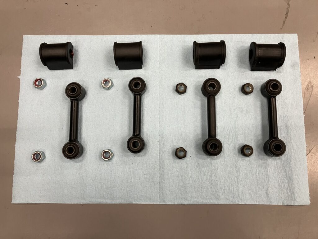 フロントスタビライザーリンク関連、及びスタビライザーブッシュを交換いたします。