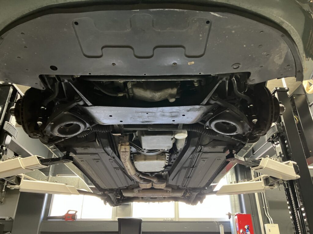 続いて車両をリフトアップ、足まわりを点検いたします。