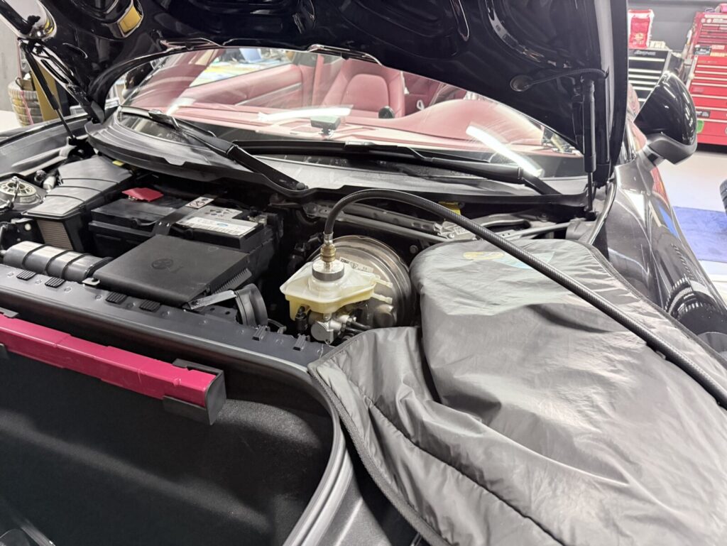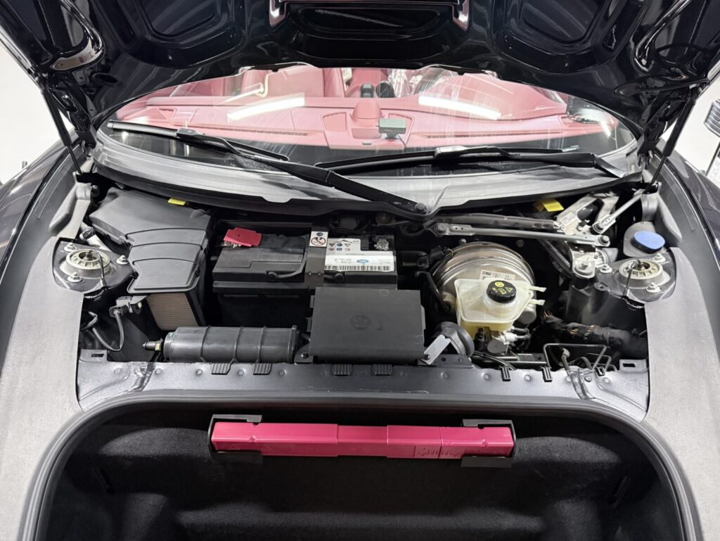 この車両はリアエンジンの為タルガトップを開けエンジン回りを確認していきます。