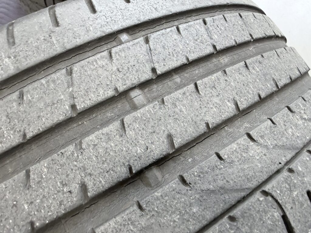 フロントのタイヤは溝がある状態でしたが新車時のままでひび割れしていました。