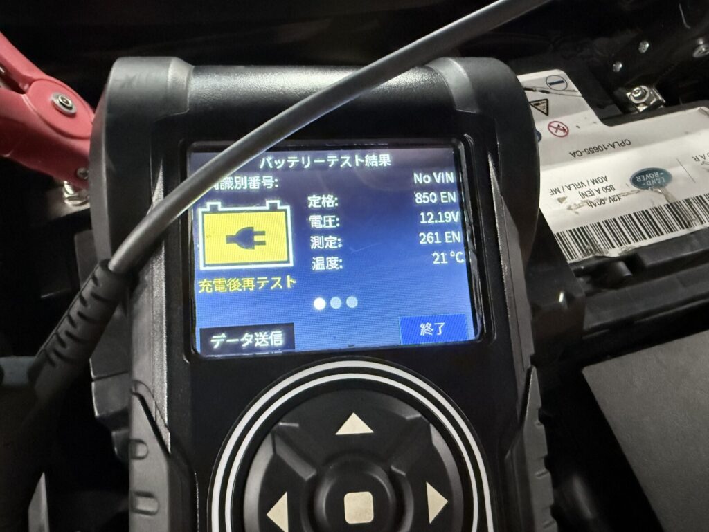 バッテリーは交換判定まではいきませんでしたので充電させていただきました。