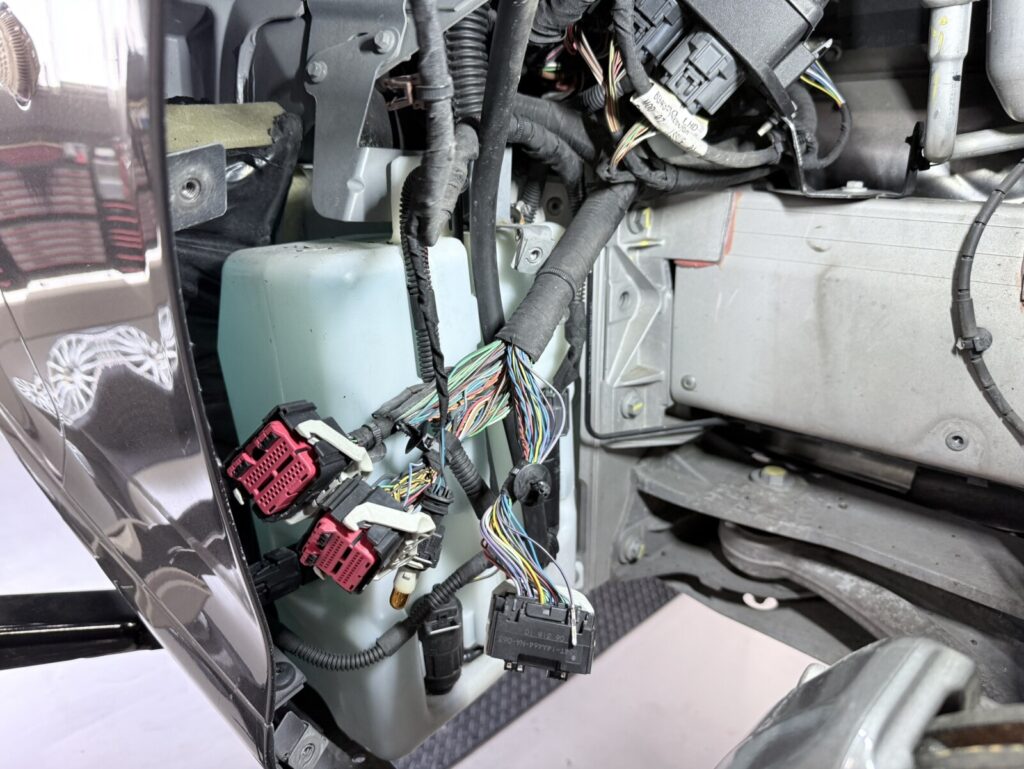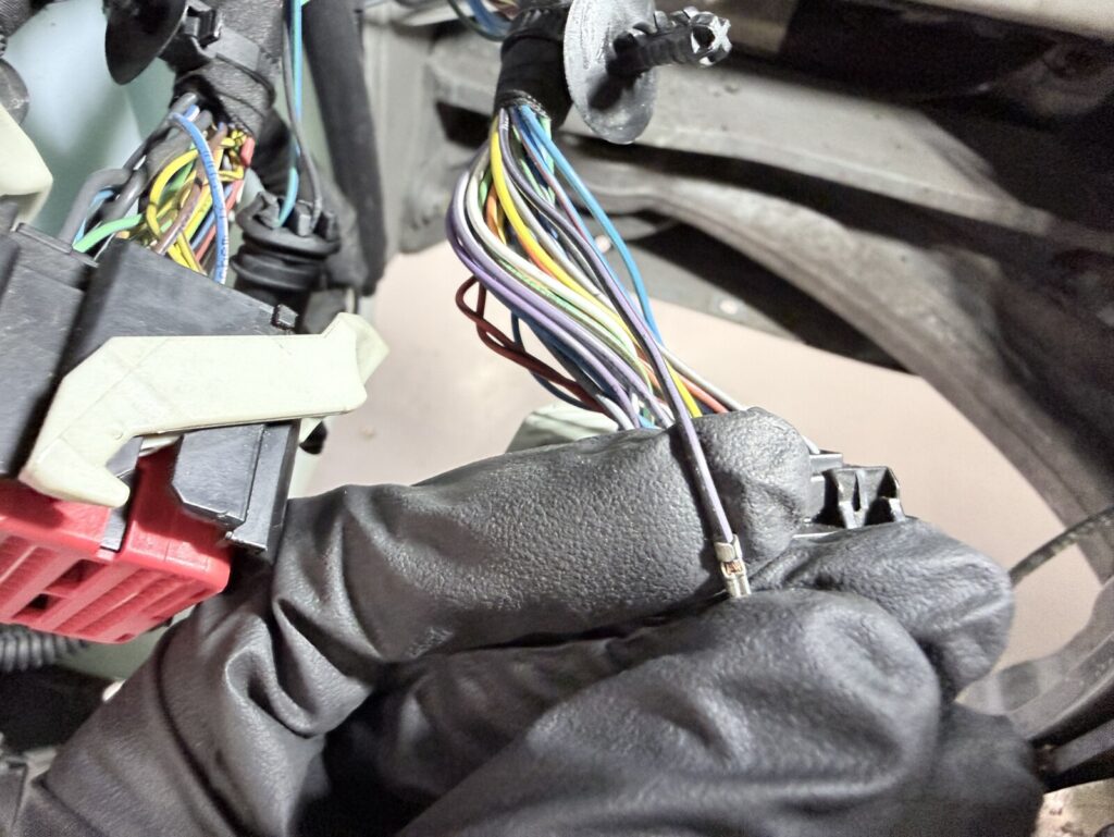 アース線の追加は車両のエンジンコントロールユニットの配線と、ユニットから室内にきている配線に割り込ませます。