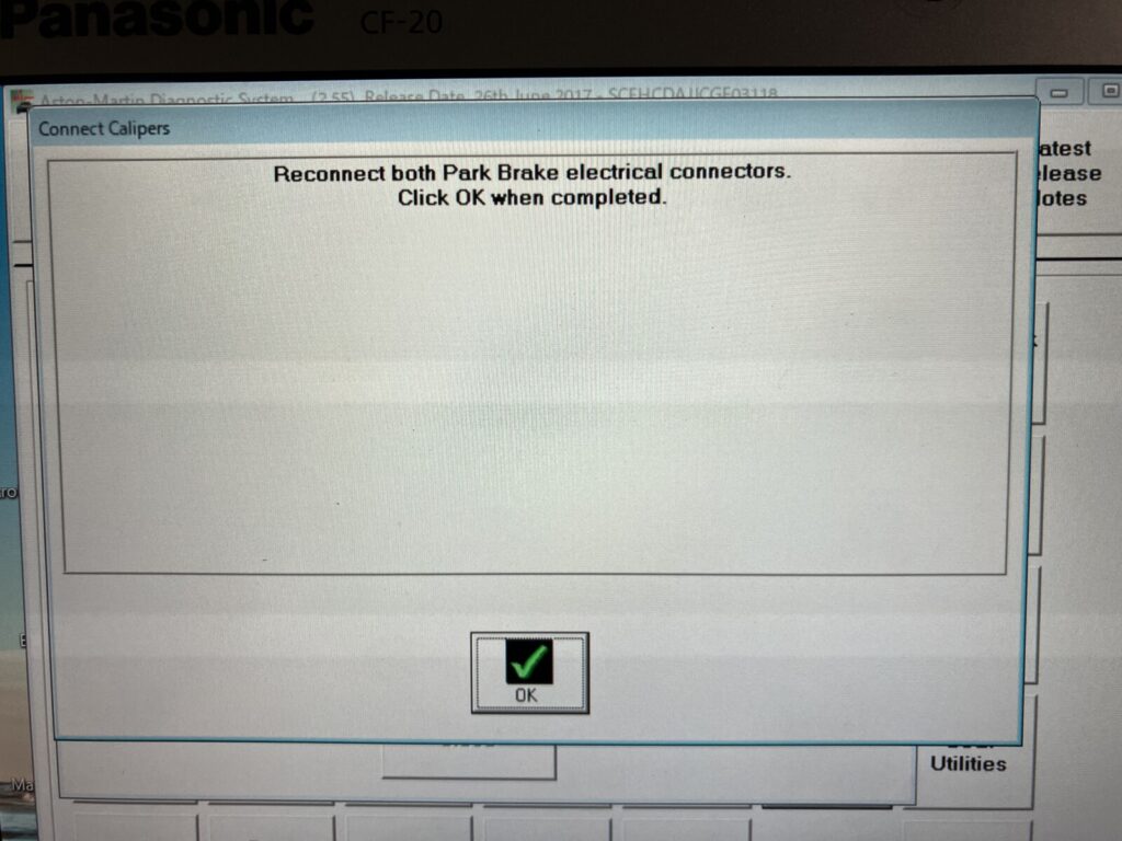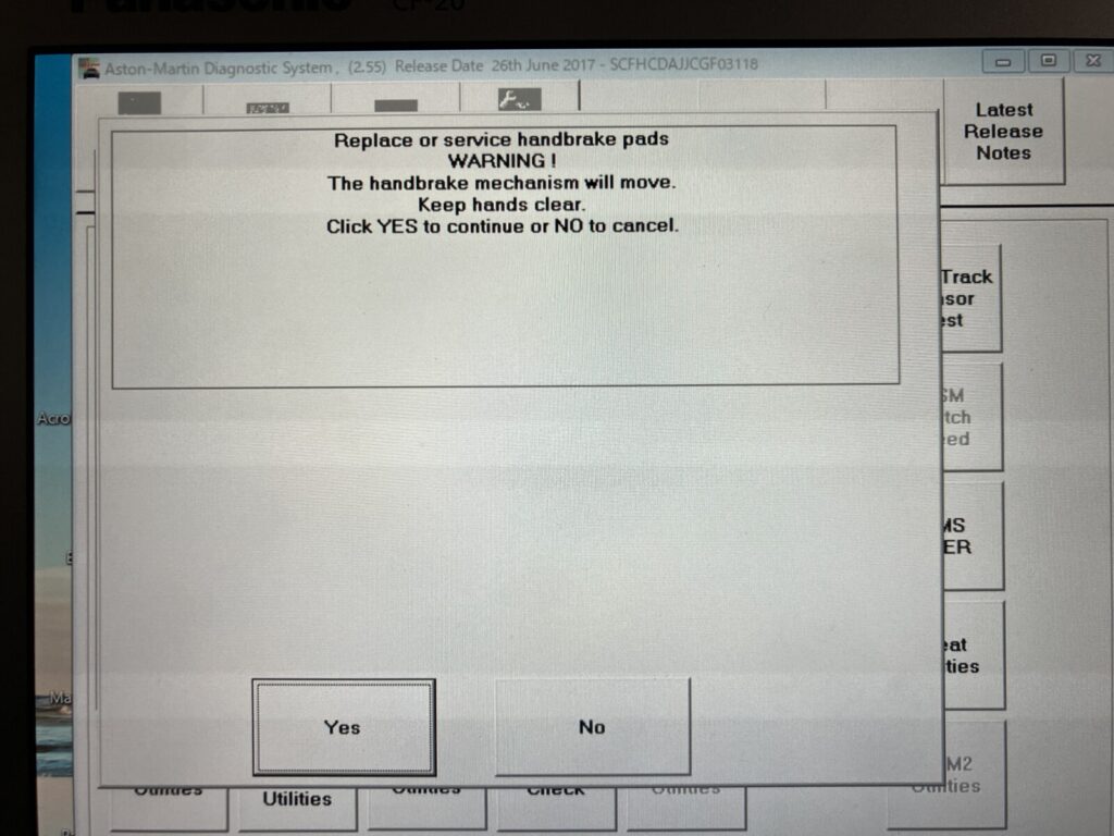 純正診断機にてサイドブレーキパッド交換モードに設定します。