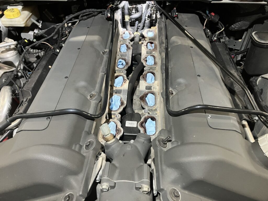 まずは、インテークマニホールドやインジェクション等手前の部品を外していきます。