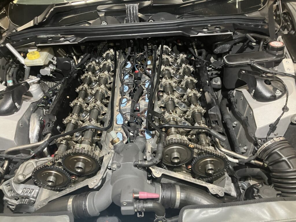 すぐに右側からオイル漏れが発生の可能性があるのでということで、左右バンク同時交換にてご承認いただきました。