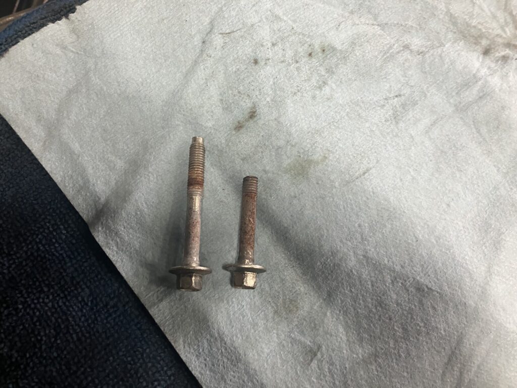 おそらく、締め付け過ぎ・雨水による腐食かと推測されます。