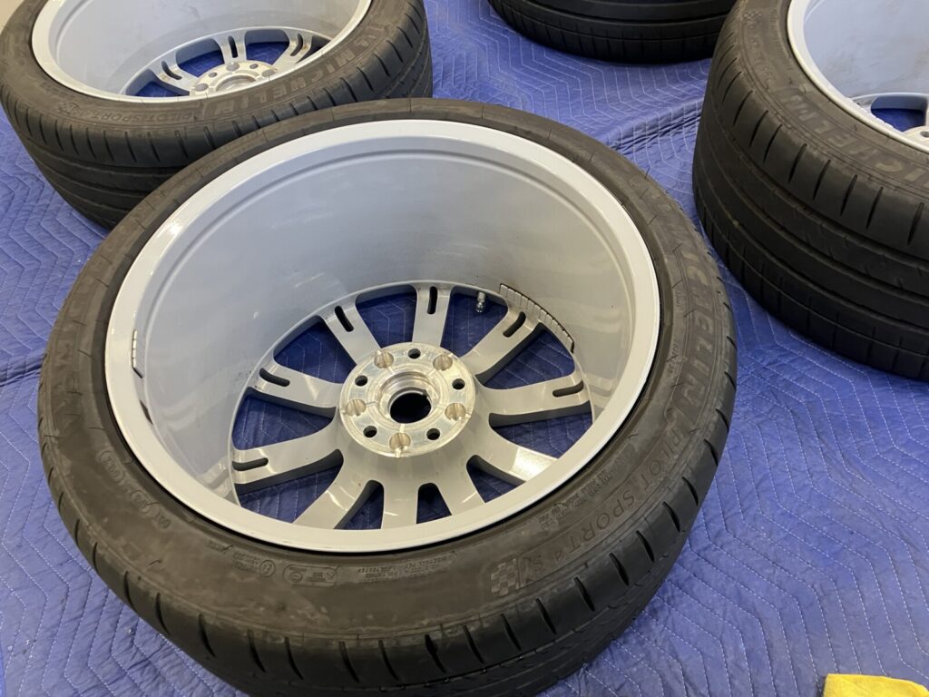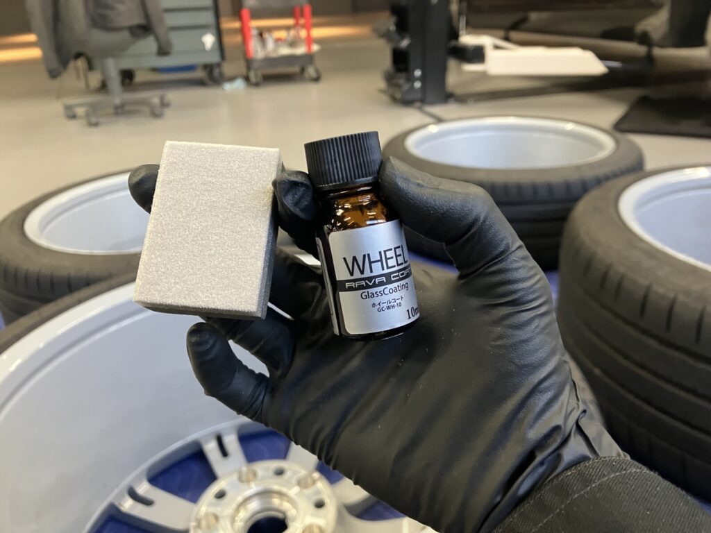 ホイールコーティング剤の施工に入ります。