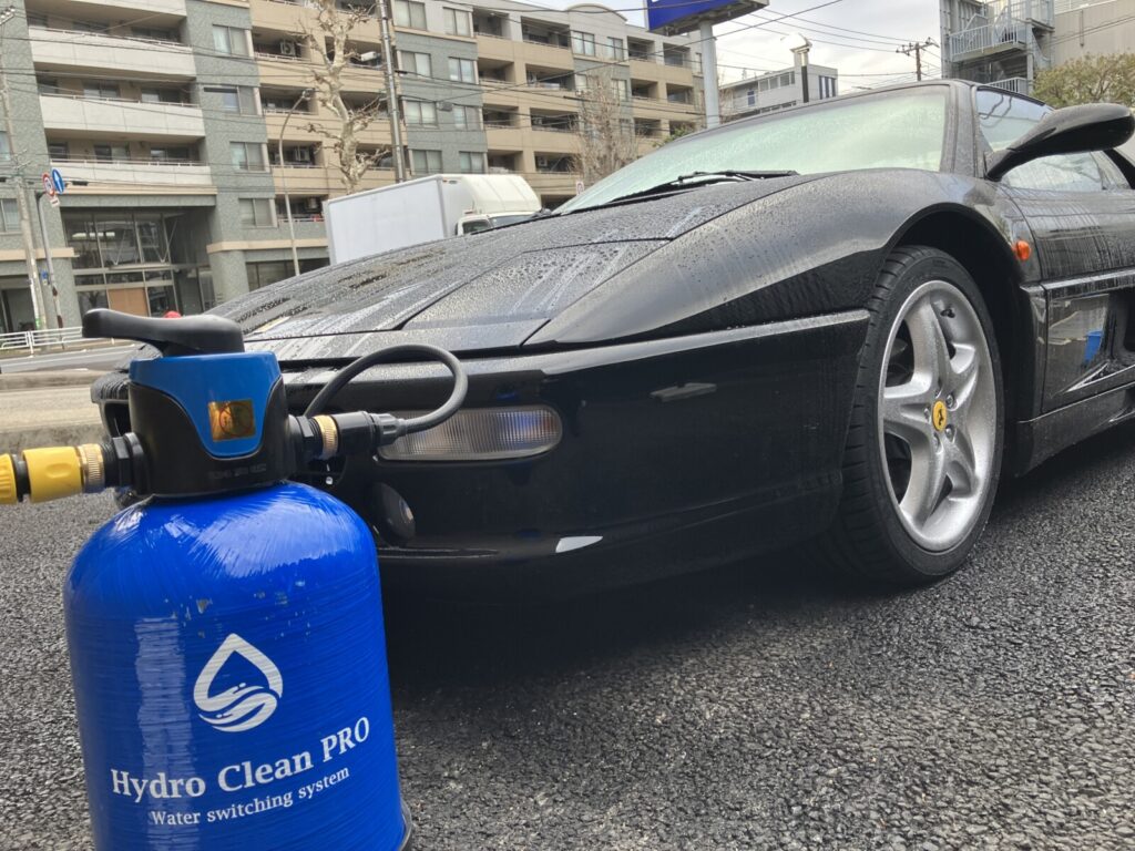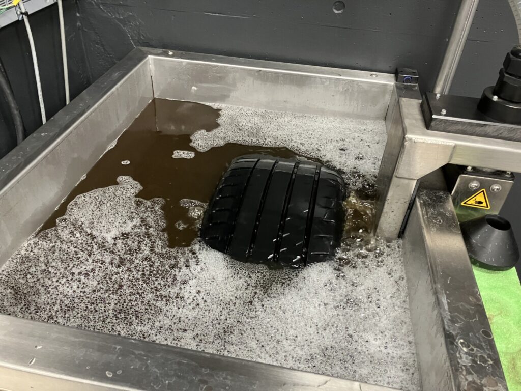 超音波洗浄後はホイールを純水ですすぎ、残った洗浄液を洗い流します。