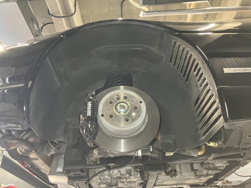 F355のバッテリーは右フロントタイヤ、及びフェンダーライナーを取り外さなければアクセスできません。