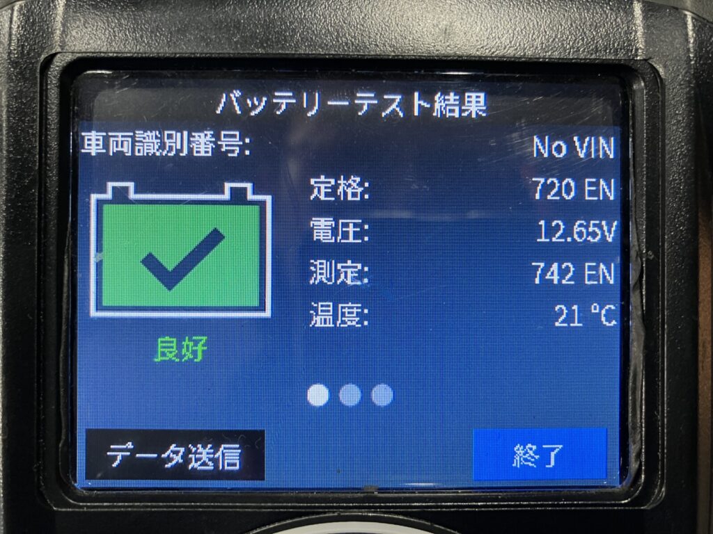 バッテリー点検結果は良好、今回は充電にて様子見とさせていただきます。