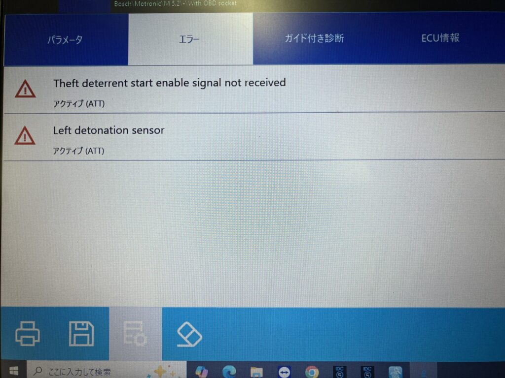 メータークラスター上でエンジンチェックランプは点灯していませんでしたが、エンジンのノッキングを検知するためのセンサー「ノックセンサー」異常のコードが入力されていました。
