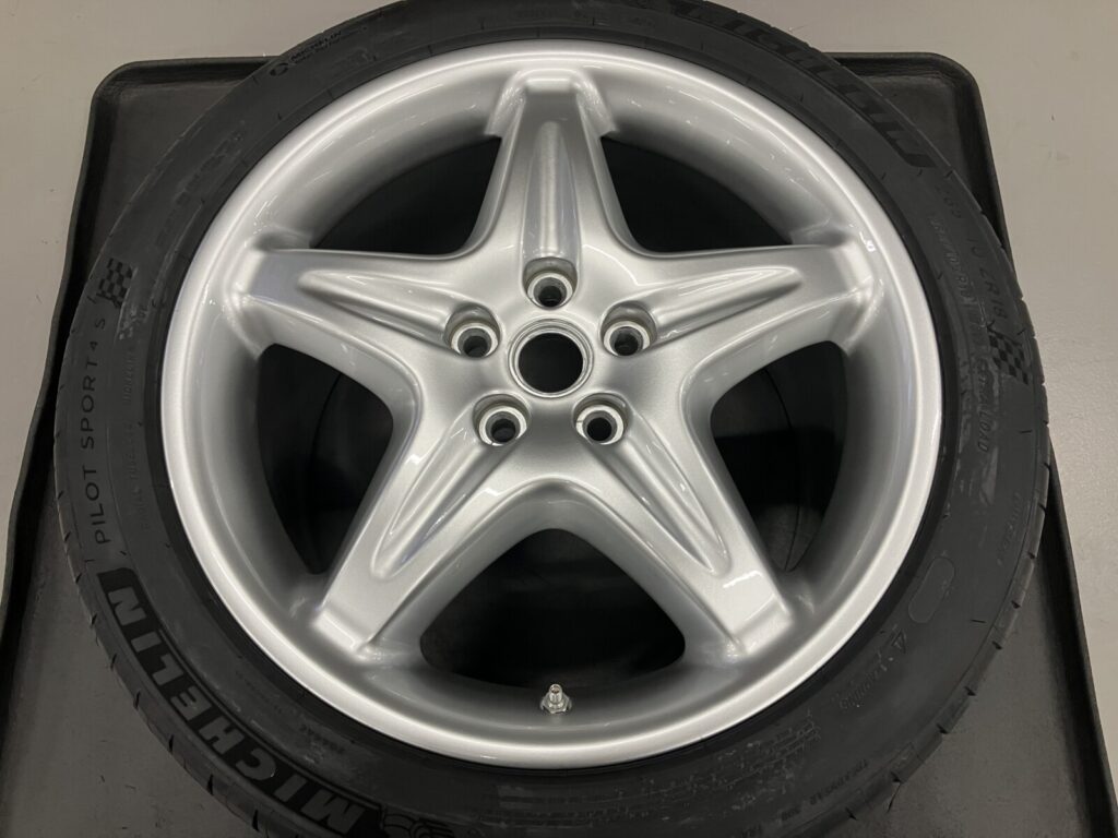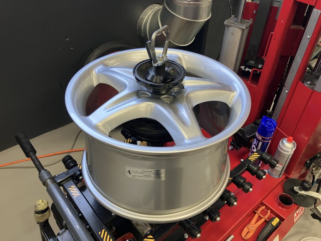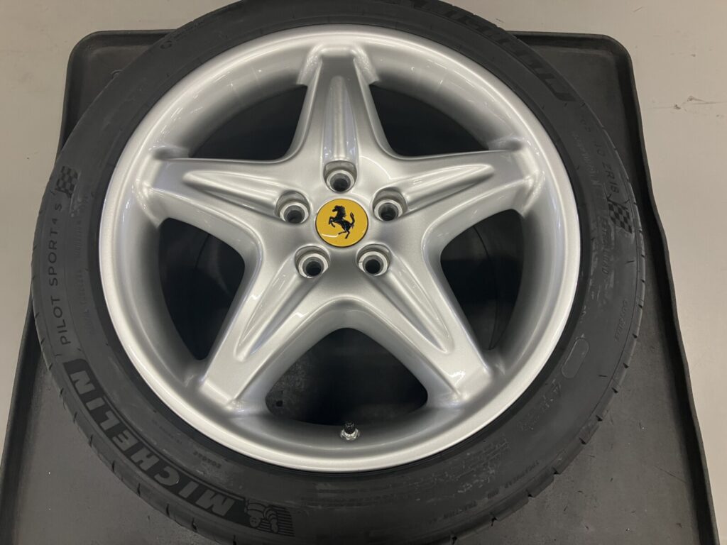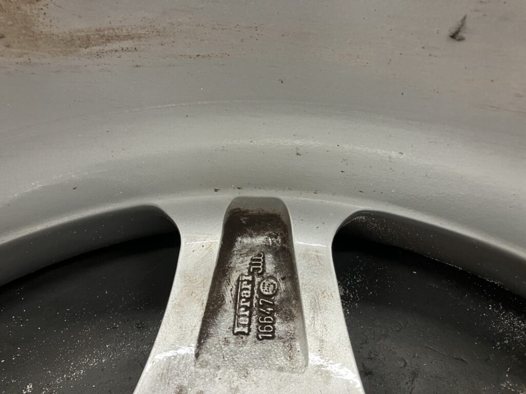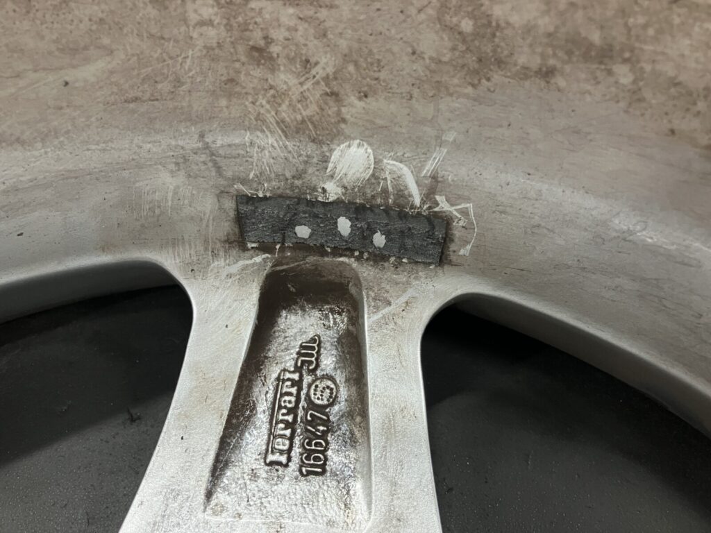 F355はマグネシウムホイールを純正採用しています。そのためアルミホイールリペアと比較し高度な技術を要します。