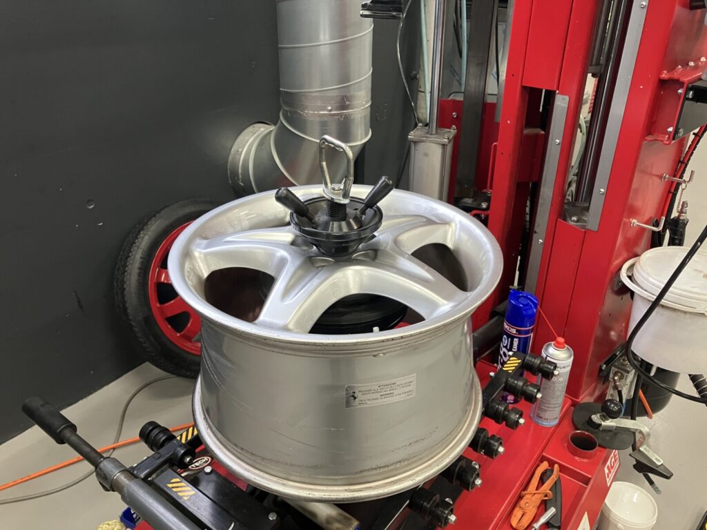 タイヤホイールをタイヤチェンジャーへセット。
