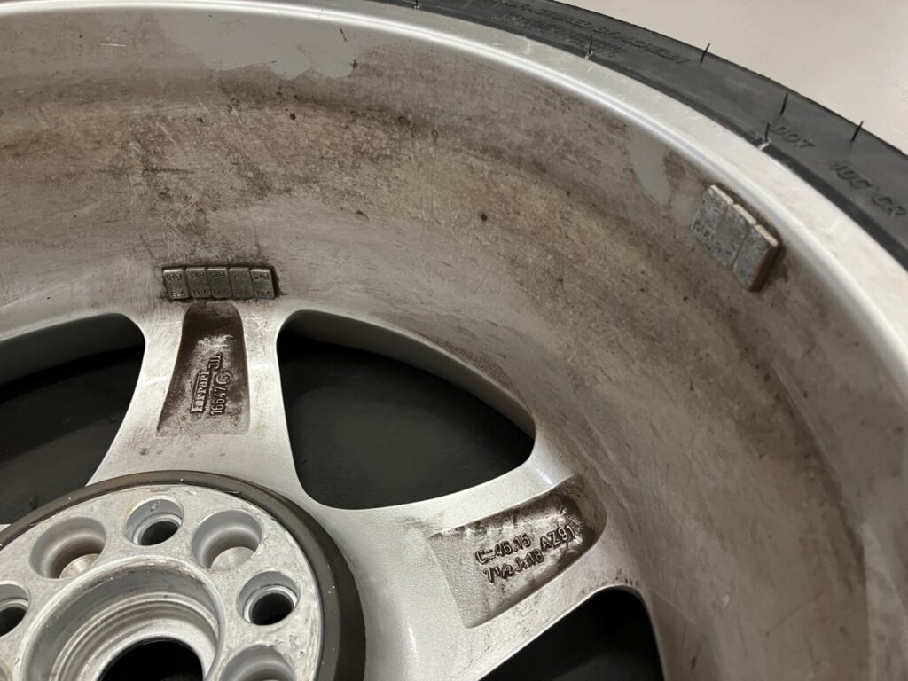 ホイール裏側に貼り付けられているバランスウエイト。
