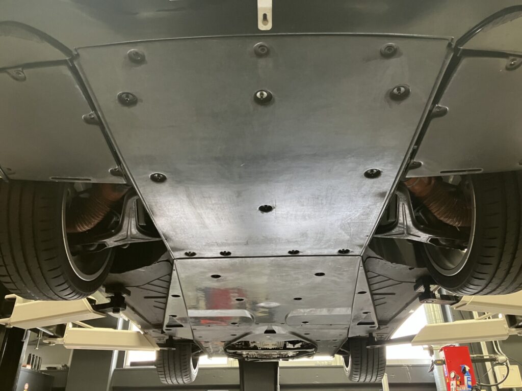 車両をリフトアップし、下まわりを検査します。
