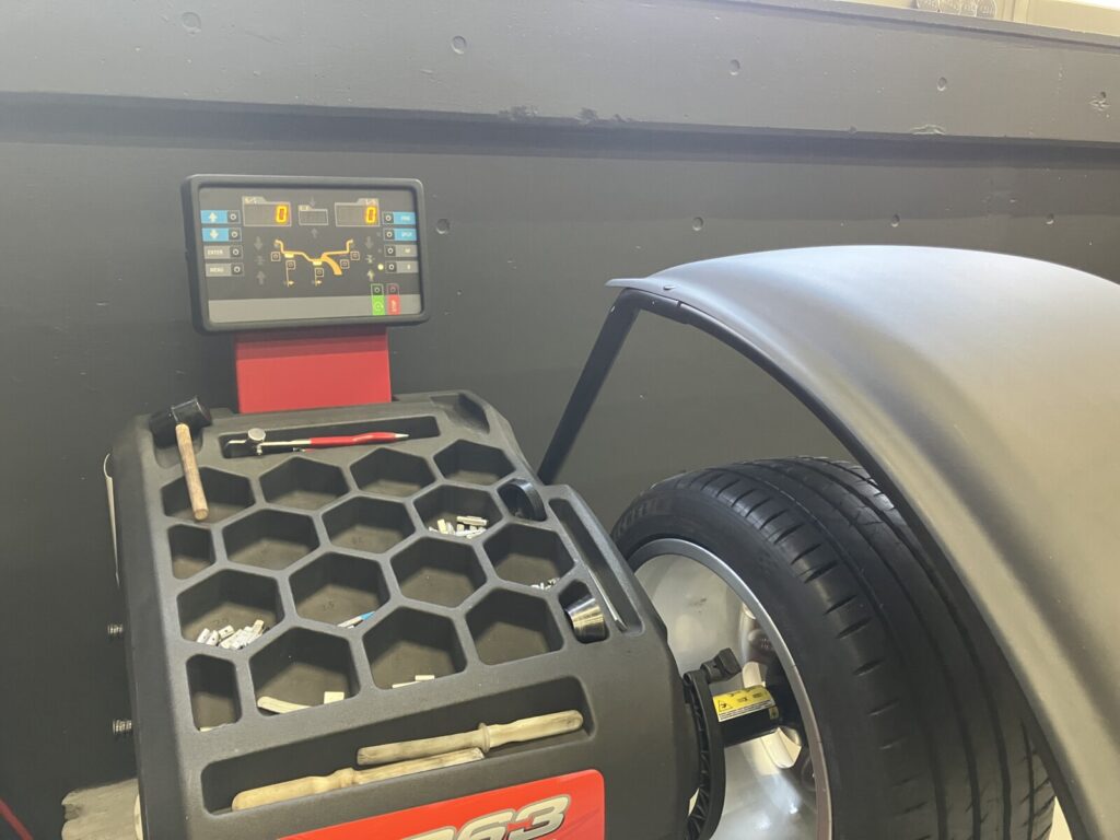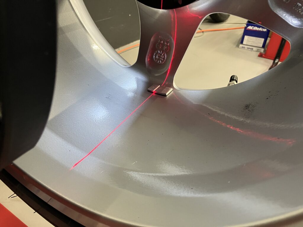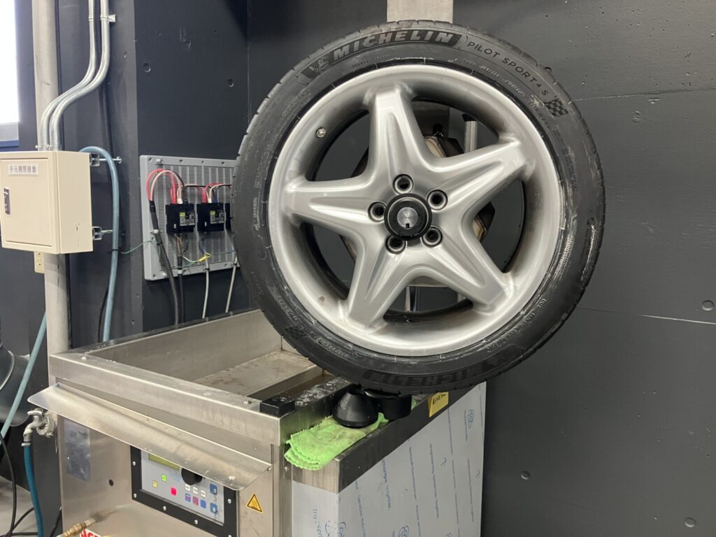 4輪ホイールバランス調整後、車両へ取付けます。