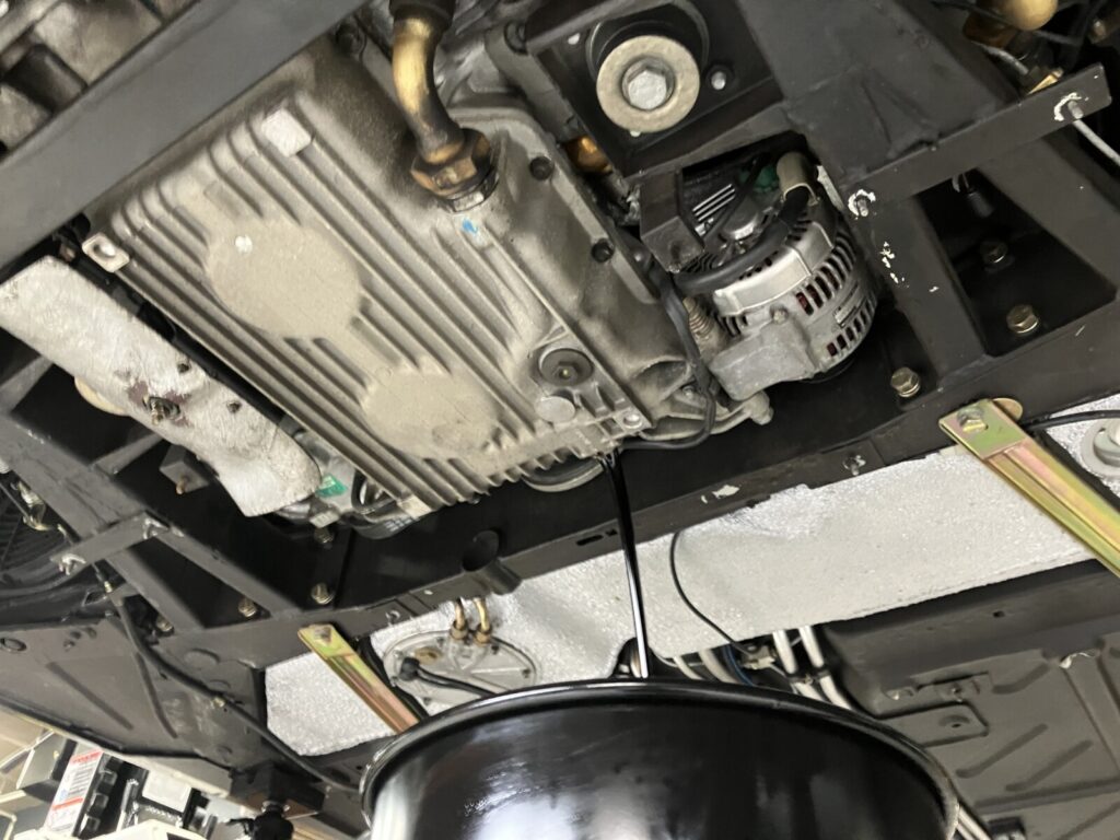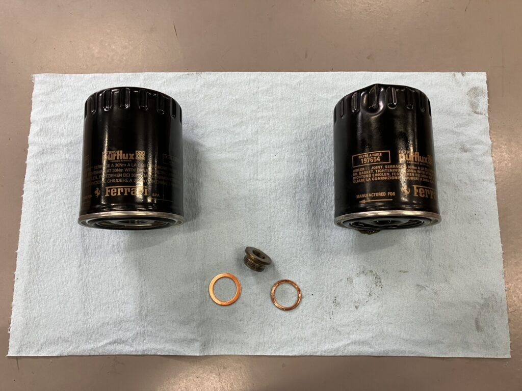 F355のエンジンオイル潤滑方式はドライサンプ式のため、エンジンオイルドレンが2か所存在します。