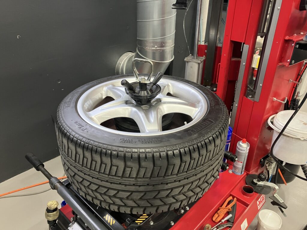 こちらも同タイミングで新品タイヤを組付けます。