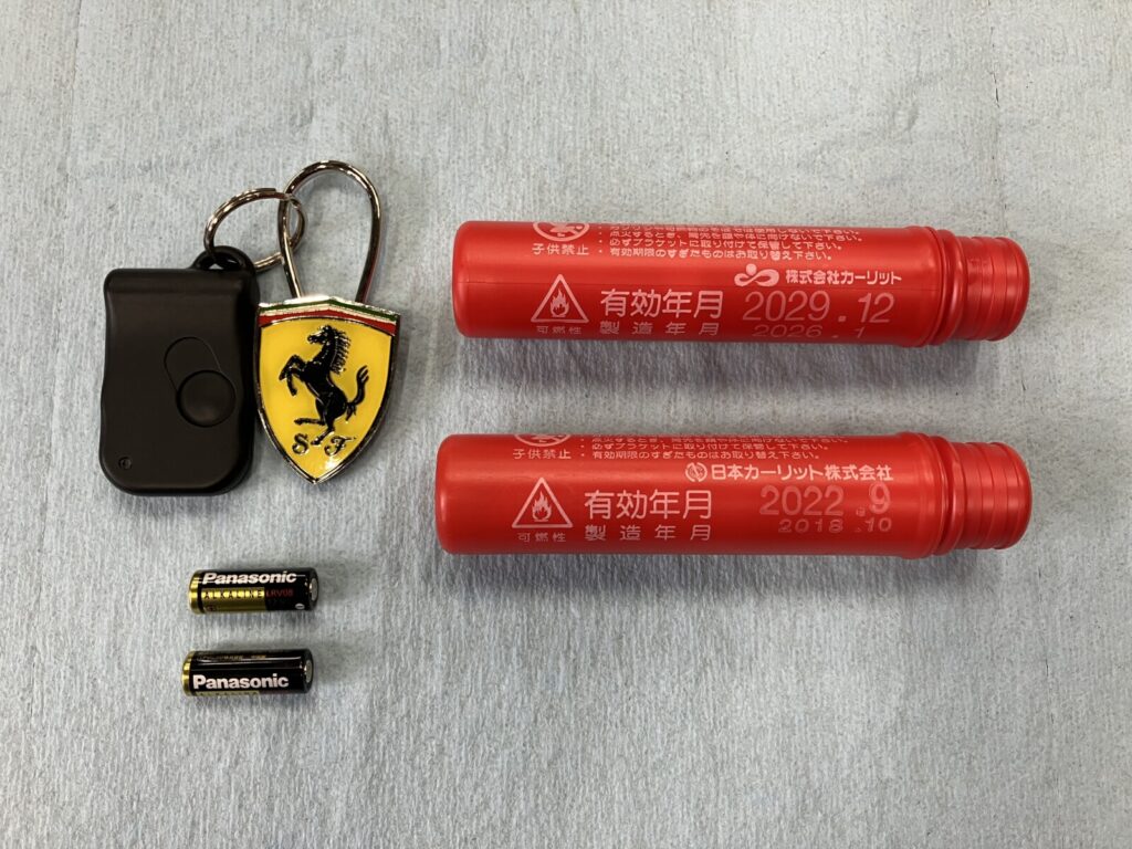 キー電池、及び発煙筒を交換。