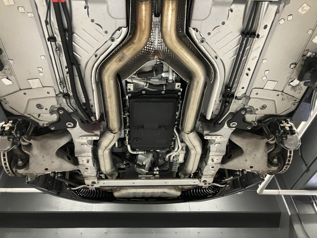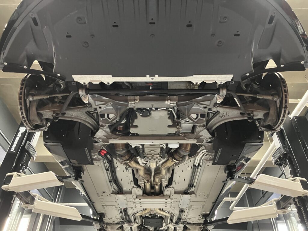 下回りの状態は良好で、オイル漏れ、水漏れなどは無く、サスペンション関係にも特に問題は有りませんでした。DB11はデフオイルを冷却水で冷却しています。点検時はカバー類を外し、必ず状態を点検します。