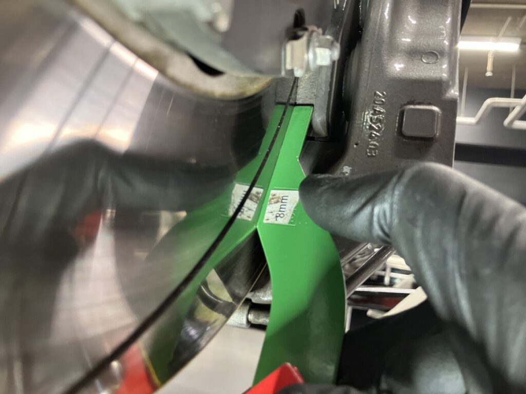 ブレーキ回りとパッドの残量、サスペンション各部を点検していきます。