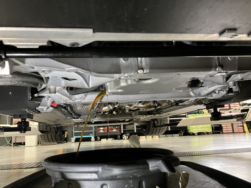 エンジンオイルを交換します。オイルフィルターは前回交換から距離を乗られていない為、今回は省かせていただきました。