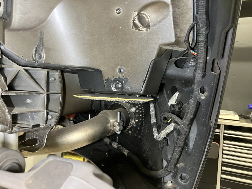 各部入念に養生し、バンパーを外すためボルト類を外します。