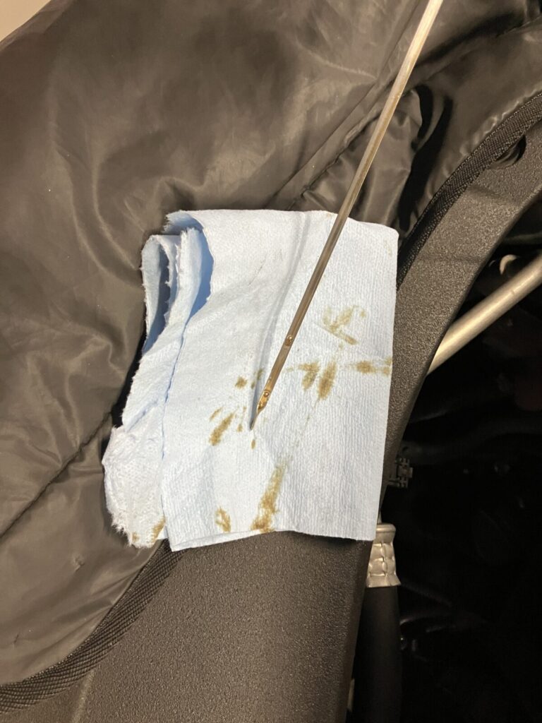 エンジンオイル量と汚れを点検。