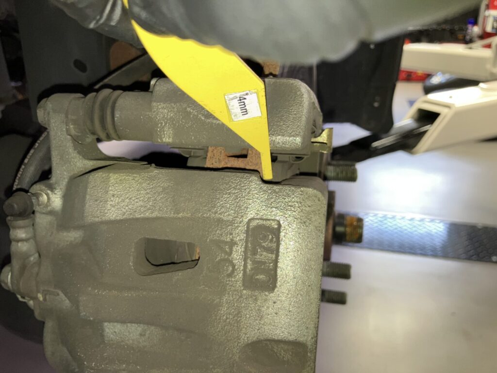 フロントブレーキの残量が4㎜程度となっており今回交換をご提案。