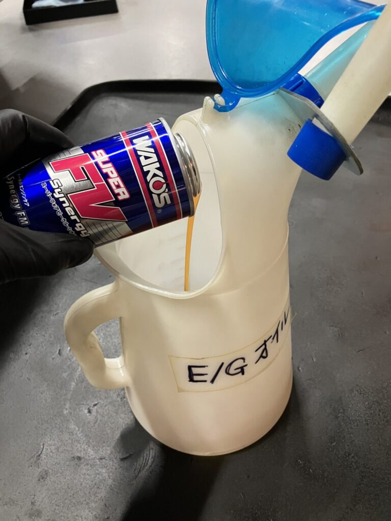 今回フリクション低減添加剤を添加。エンジン内部の金属摺動部分の保護と各部抵抗の低減に効果的です。エンジンオイルの性能を補強するような効果があります。オイル交換毎の添加をおすすめします。