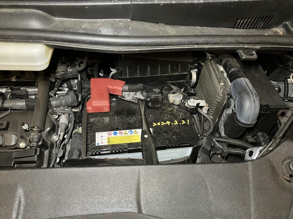アイドリングストップ車専用バッテリーを取り付けます。