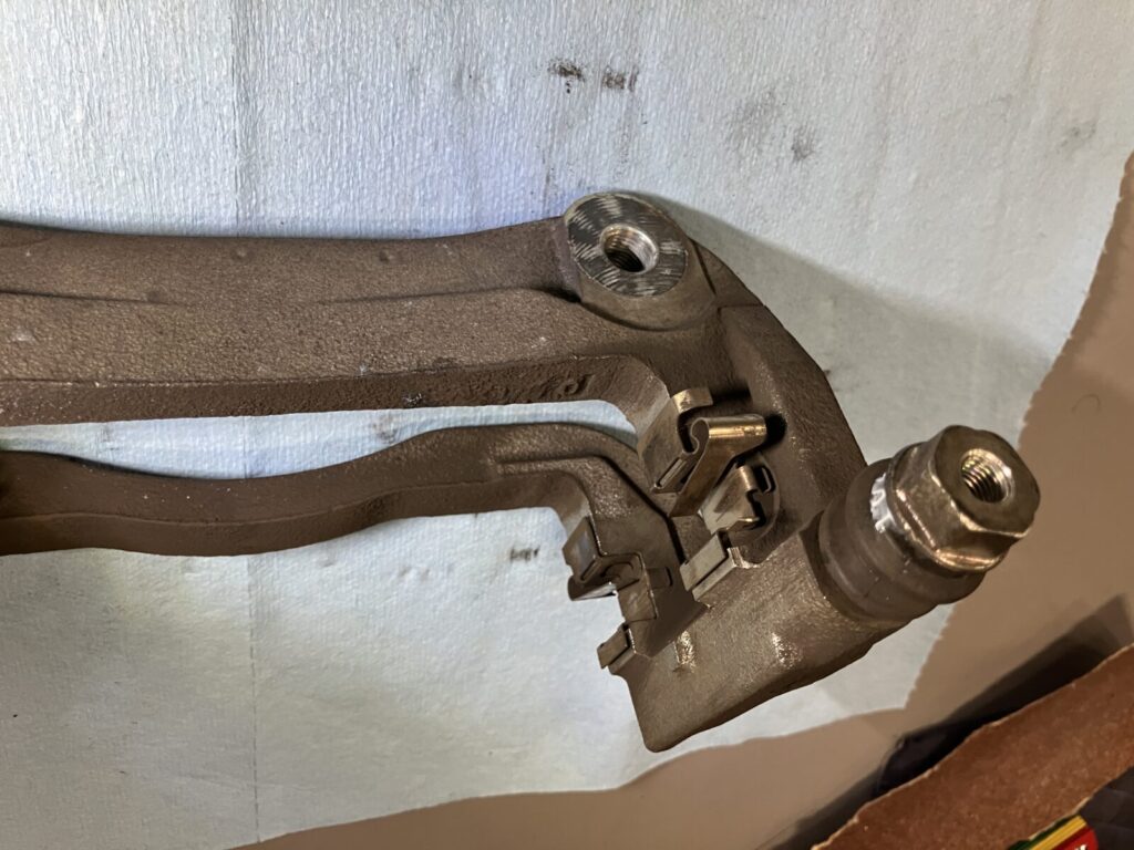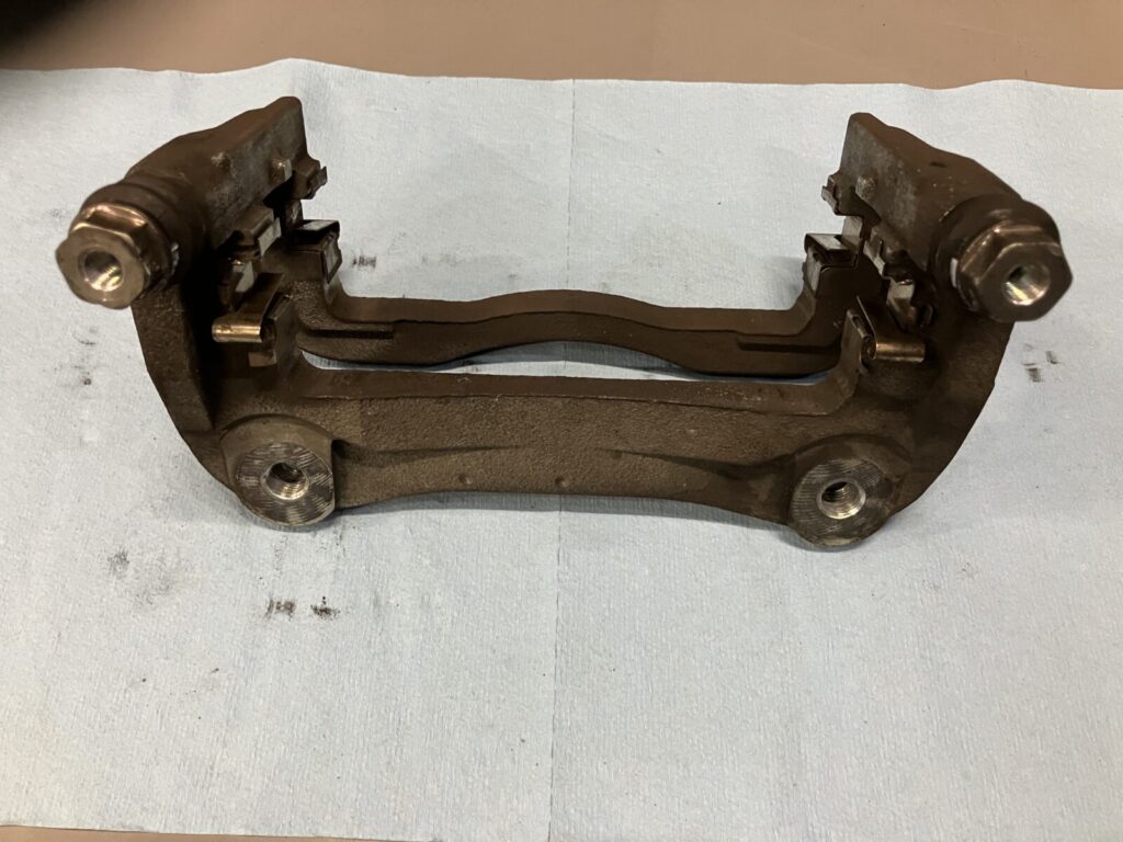 キャリパーサポートも取り外し、金属のサポートの清掃やスライドピンの清掃とグリスアップ、ブーツに損傷が無いか確認を行います。