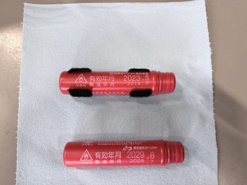 発煙筒が期限切れだったので交換しました。