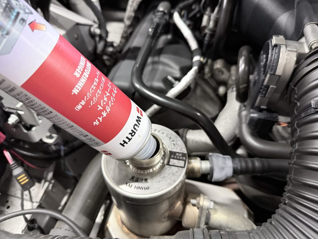 新油を入れる際にエンジン内の摩耗を低減させエンジン性能を向上させる添加剤を注入します。