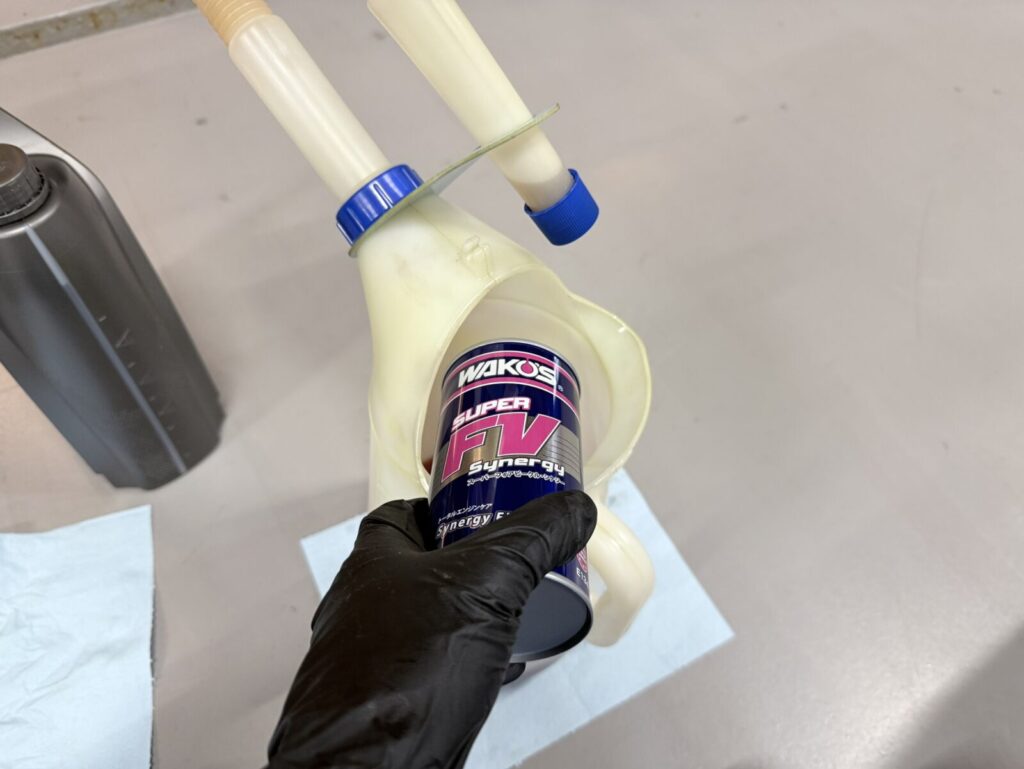 今回エンジオイル交換と同時にWAKO’Sのスーパーフォアビークル・シナジー(S-FV・S)も添加。