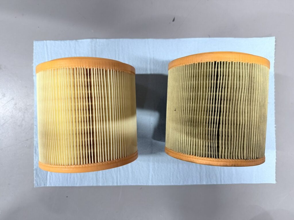 続いてエアクリーナーの点検を実施、それほど汚れはなかったので今回は清掃をさせていただきました。