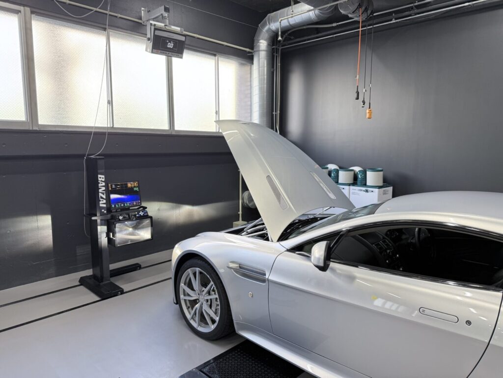 弊社で販売させていただいたアストンマーティン V8ヴァンテージSの納車整備を行います。