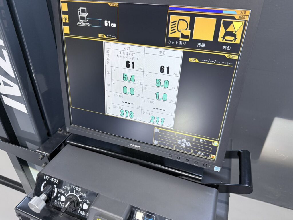 車検更新前にサイドスリップ・光軸調整を行います。