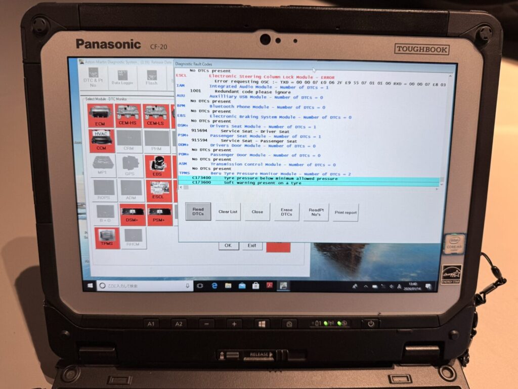 最後に診断機を接続し車両のユニット等にエラーがないか確認します。