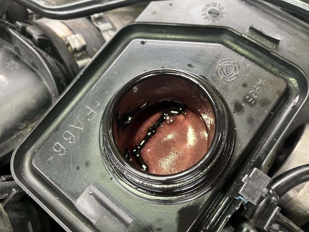 ポンプ故障の影響により、エア抜き作業時に上がってきたフルードが鉄粉が混ざった状態となっていましたので、