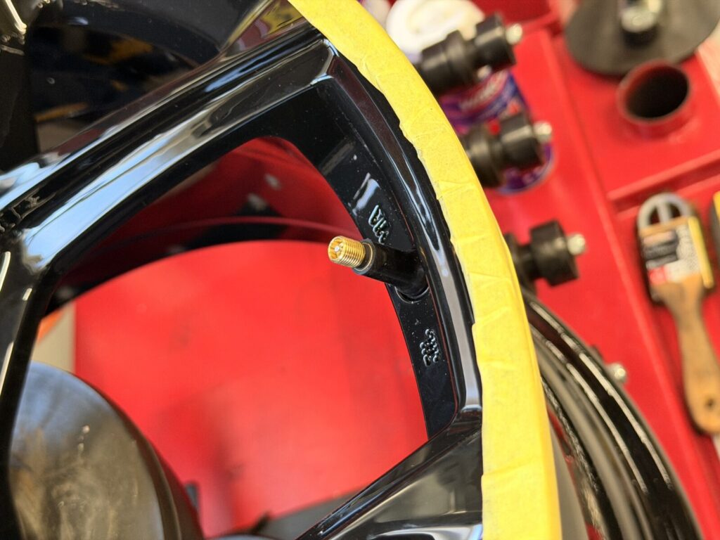 新品ホイールにはエアバルブが付いていないので新品を装着